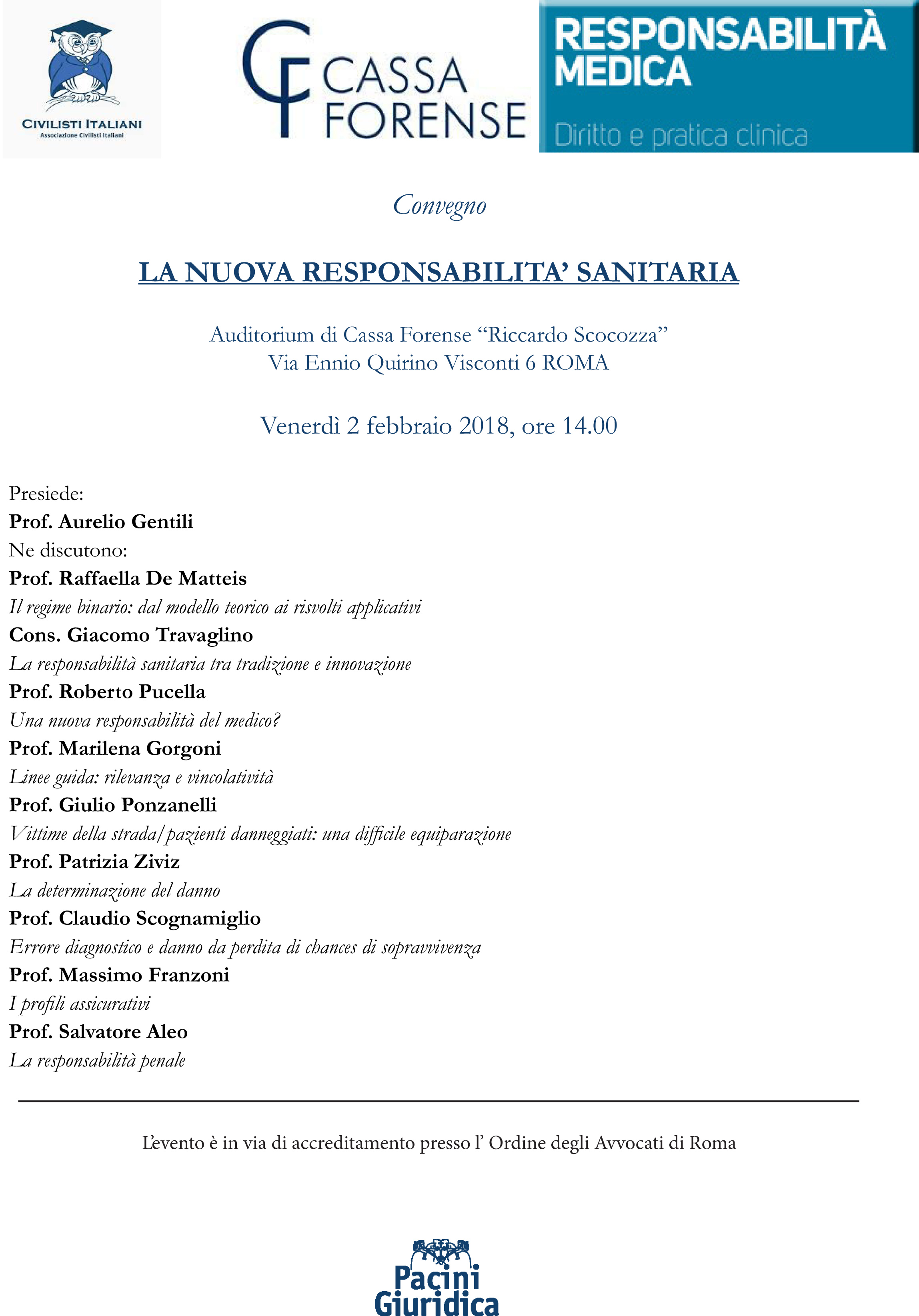 La nuova responsabilità sanitaria, Roma 2 febbraio 2018