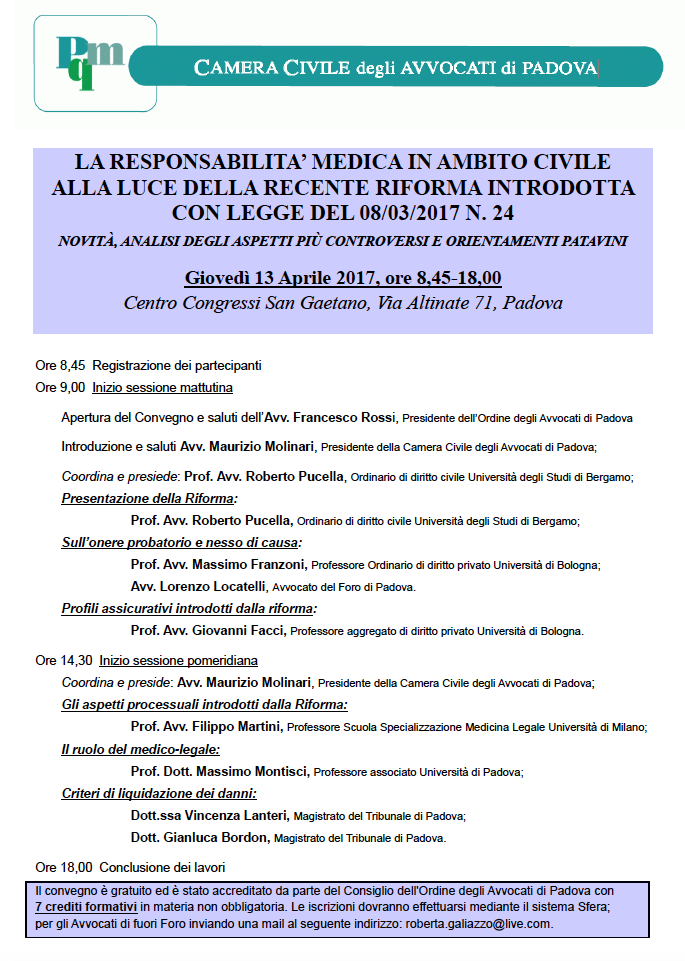 LA RESPONSABILITA’ MEDICA IN AMBITO CIVILE ALLA LUCE DELLA RECENTE RIFORMA INTRODOTTA CON LEGGE DEL 08/03/2017 N. 24, 13 aprile 2017