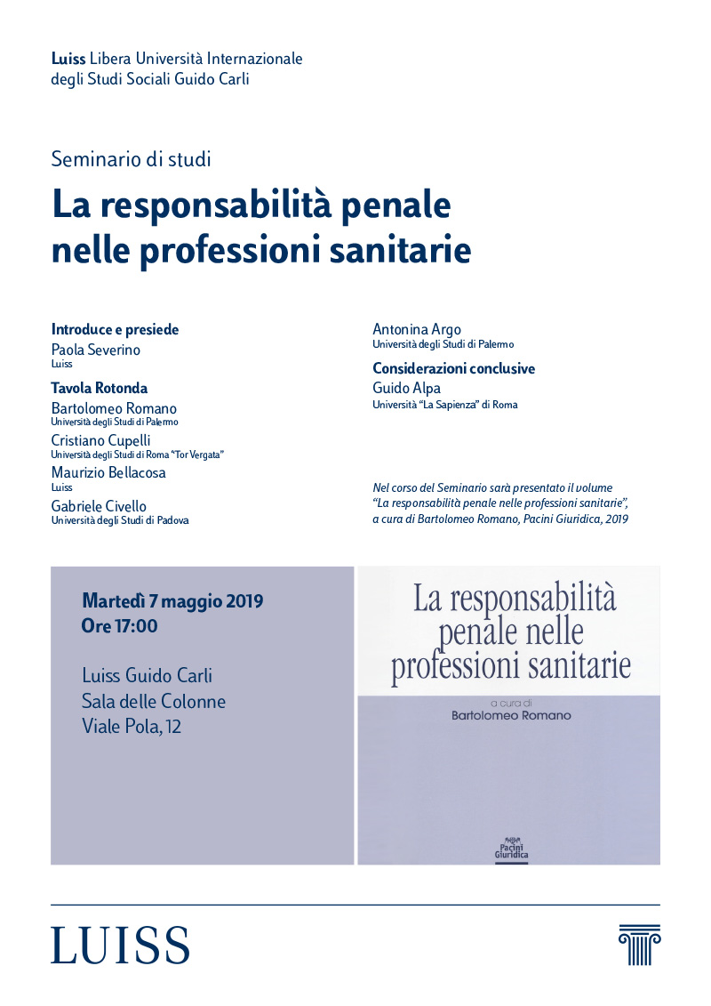 La responsabilità penale nelle professioni sanitarie, Roma 7 maggio 2019