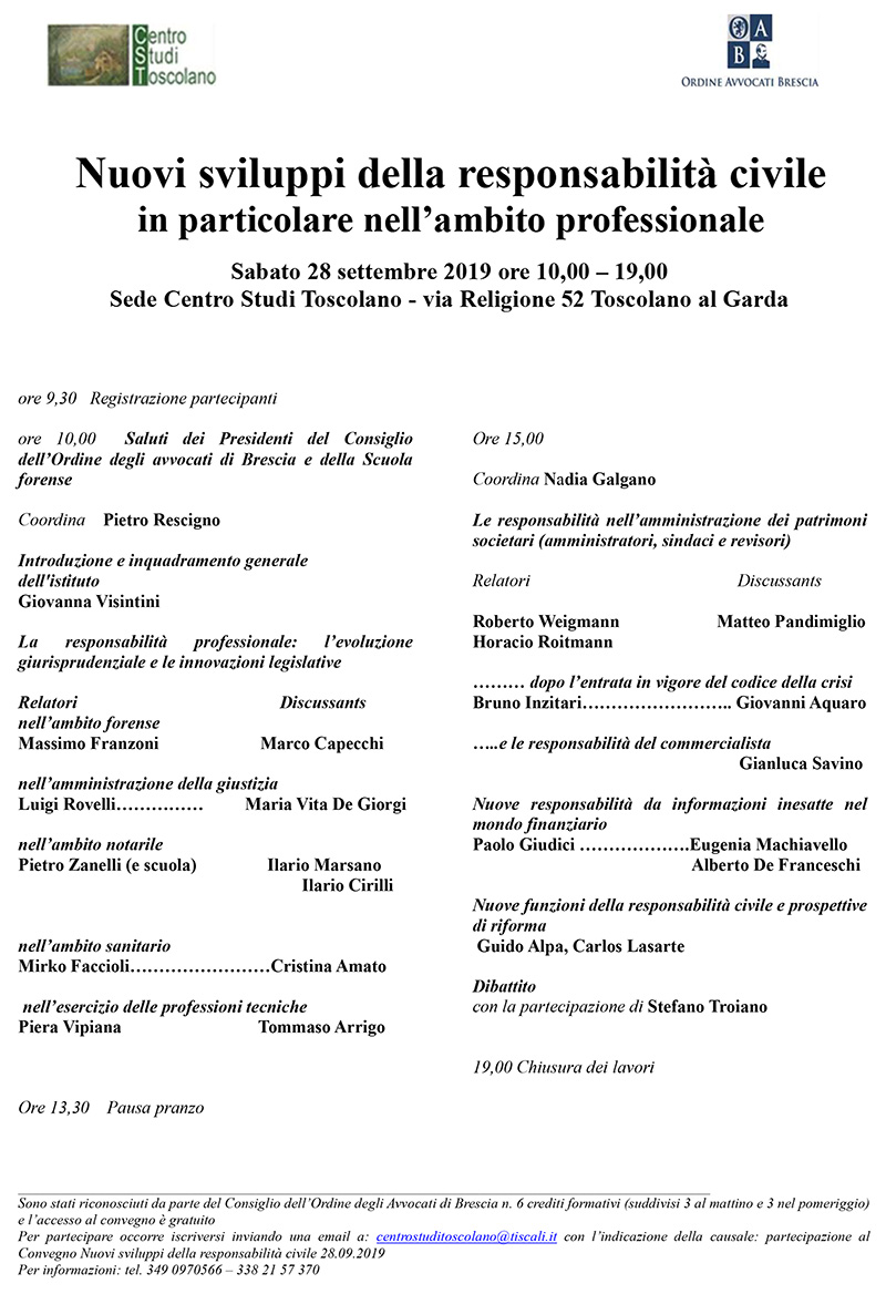 Nuovi sviluppi della responsabilità civile, Toscolano al Garda 28 settembre 2019